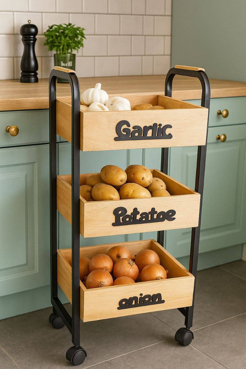 جاسیب زمینی و پیاز 2 طبقه کف چوب مربع