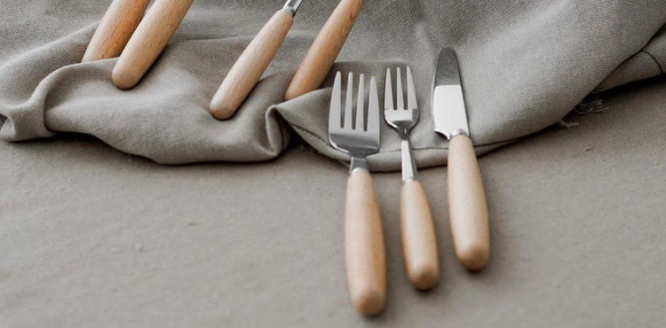 کارد و چنگال و قاشق دسته بامبو 12 عددی