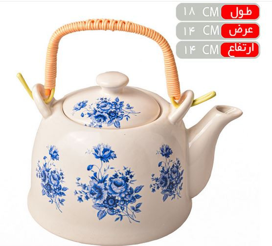 قوری دسته حصیری گل آبی