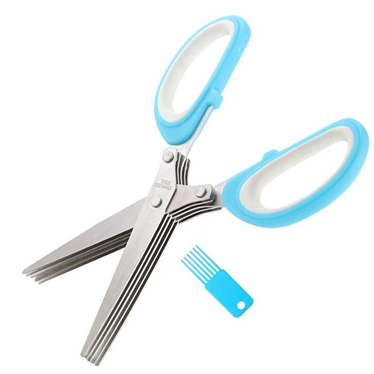 قیچی سبزی خرد کن ، یک قیچی 5 لایه، خرد کننده انواع سبزیجات در ابعاد یکسان است و علاوه بر تسریع فرآیند خرد کردن با ایجاد برش های یک اندازه، سفره کدبانوی خانه را زیباتر می نماید. قیچی سبزی خرد کن scissors yong zhao یک ابزار مناسب و فوق العاده با کیفیت جهت خرد کردن، دارای 10 تیغه بسیار تیز برای کاربرد های مختلف،خردکننده انواع سبزیجات مانند کاهو،کلم و پیاز بدون له کردن آنها می باشد. تیغه های قیچی از استیل ضد زنگ ساخته شده اند، جنس دسته آن پلاستیکی است و مانع سر خوردن قیچی از دست می شود.