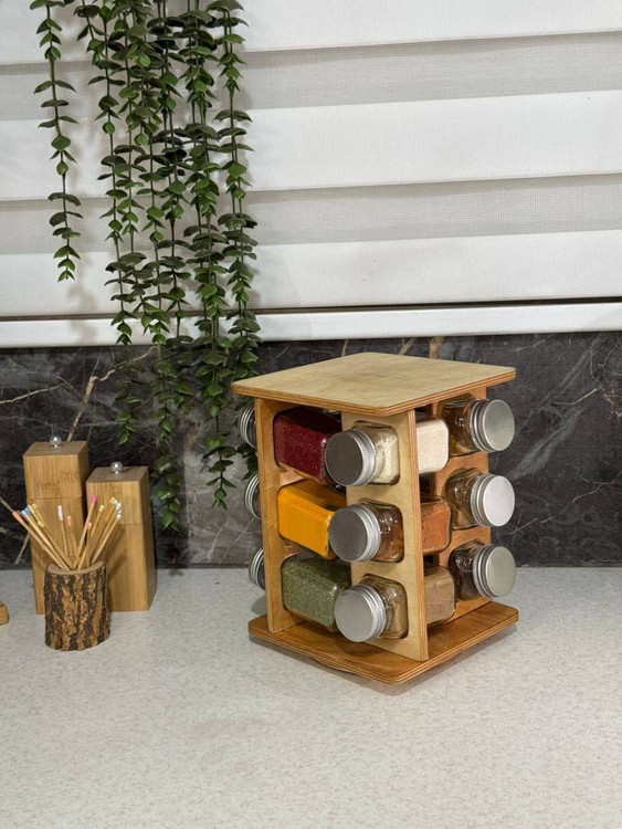 دارای 12 جاادویه با درب پوش استیل 3 حالته به همراه استند چرخشی