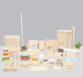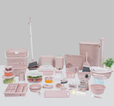 ست آبکش و لگن بیضی، ست برنج شور، صافی سینک، جای قاشق و چنگال پایه استیل، ارگانایزر قاشق و چنگال داخل کابینتی دوطبقه، باکس میوه، ست ظروف نگه دارنده 3 سایز مربع، ظرف نان، سبد نان و سبزی بیضی، تخته گوشت، قیف دو سایز، آبمیوه گیری دستی، کاسه میکس، سبد پیک نیک دربدار، پارچ گرد، غلاف سیخ، سطل زباله گرد ۳ لیتری، جارو حمام، ست جارو و خاک انداز مخزن دار، برس میوه شوی، جارو نپتون، کف شوی دو تکه، سبد گیره بند رخت ۲۰ عددی، سبد رخت مستطیل، سبد رخت چرک دربدار بلند، صندلی حمام، جای پودر شوینده، لگن گرد، برس بطری شوی و ست جامایعی