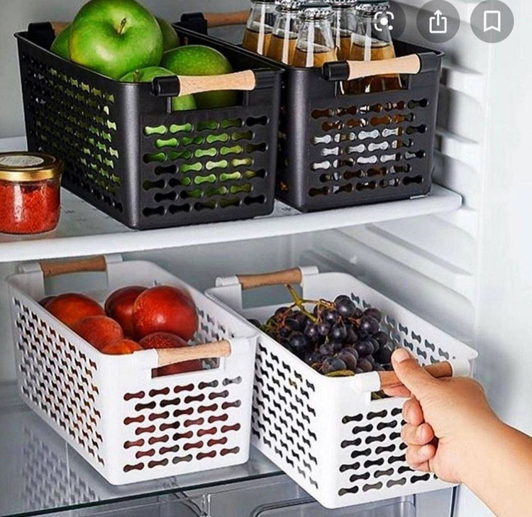 این سبد از جنس پلاستیک و در مدل مستطیل طراحی و تولید شده است. این محصول در رنگ بندی سیاه و سفید ارائه شده که شما میتوانید با توجه به سلیقه و مورد کاربردی که می خواهید مدل دلخواه خود آنرا انتخاب و استفاده نمائید. از این سبد ها برای نگهداری انواع مواد غذایی، میوه، سبزی و …در یخچال و یا برای نگه داری حوله و سایر وسایل داخل کمد از آن استفاده می شود. به دلیل وزن مناسب و نسبتا کم این سبد ها، شما میتوانید ازآنها در منزل، محیط های طبخ غذا، فروشگاه ها، میوه فروشی ها و …و یا حتی در پیک نیک استفاده نمائید.
