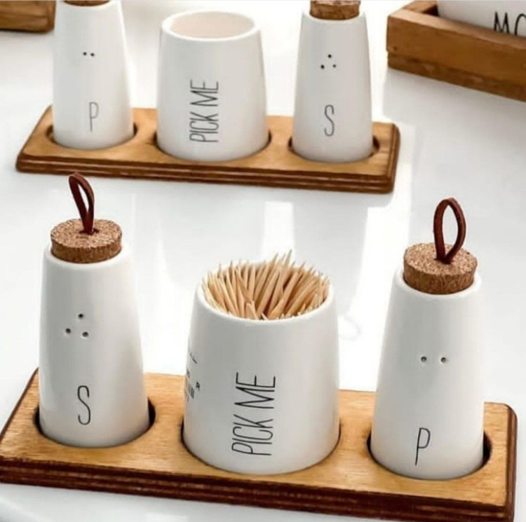 ترکیب چوب و سرامیک در کنار طراحی فانتزی و جذاب نمکدان ها این ست را تبدیل به یک ست ست نمکپاش و جاخلالی سرامیکی بسیار جذاب و پر فروش کرده.