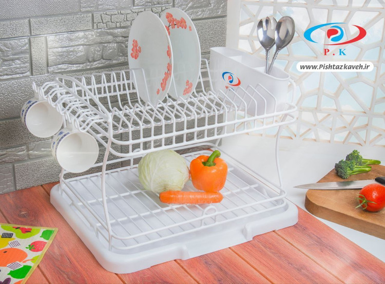 جاظرفی دو طبقه غزال سایز بزرگ سفید رنگ دارای روکش پلاستیک سه تکه شامل جاقاشقی،جاظرفی و سینی کف محصول شرکت پیشتاز کاوه مناسب کنار سینک، حمل اسان